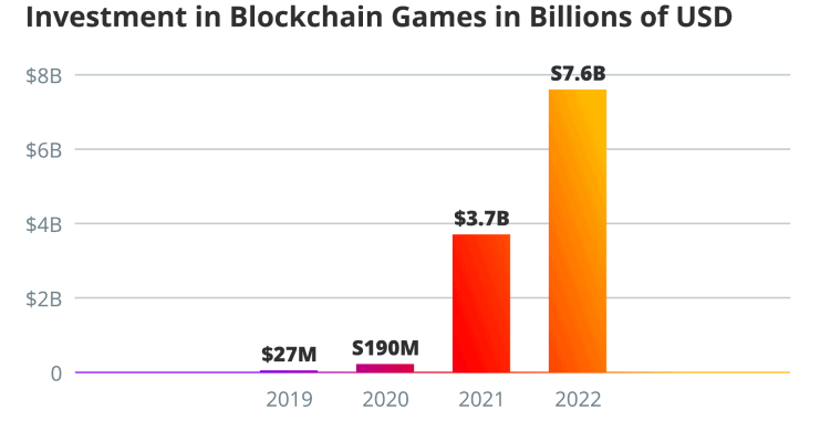 Allein im Jahr 2021 und 2022 wurden laut Dappradar zusammengerechnet über 10 Milliarden US-Dollar in den Sektor investiert. Außerdem sind die Gesamtinvestitionen in den Sektor seit 2020 um mehr als das 40-fache gestiegen.