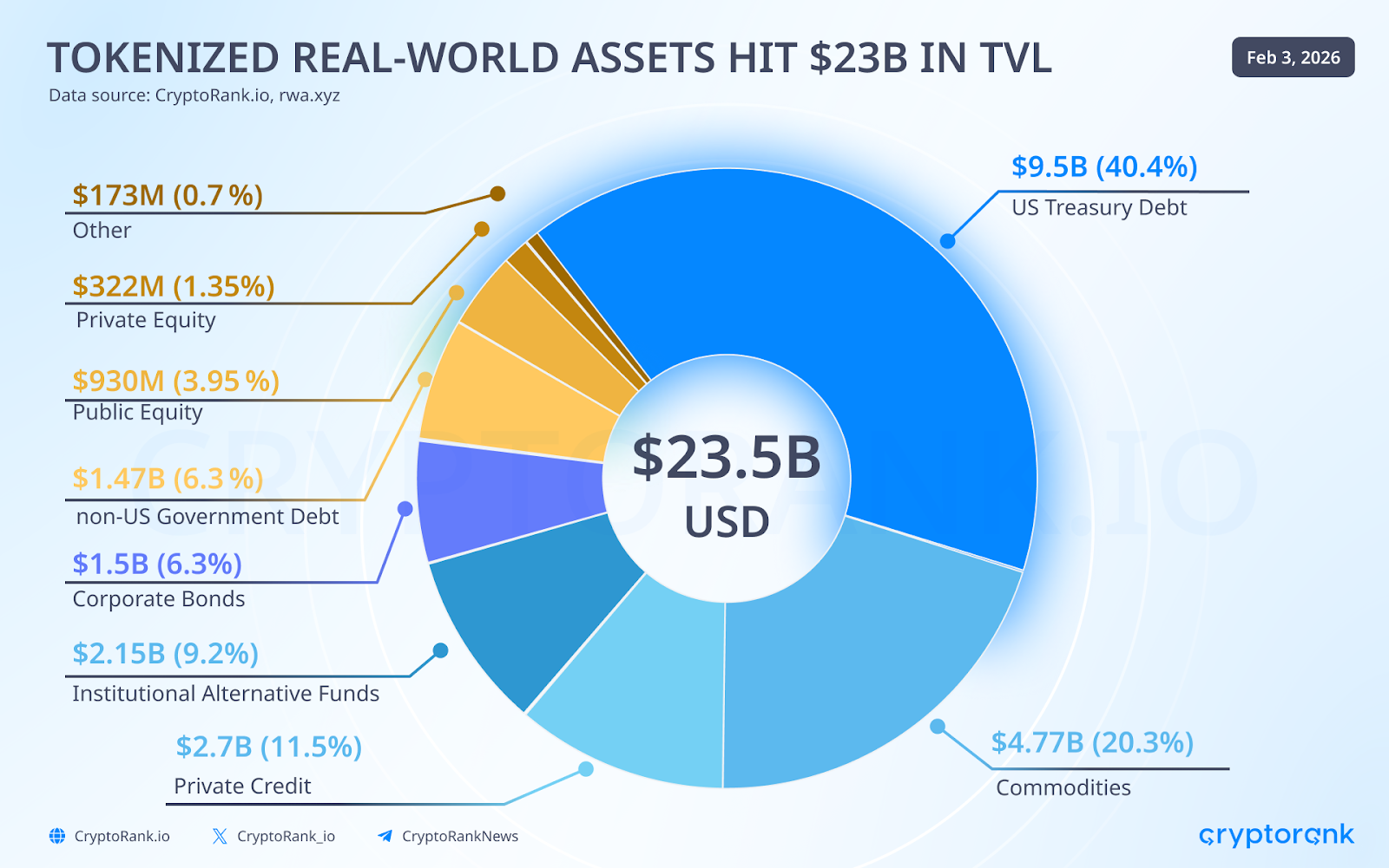 El valor total de RWA subió de 20,9 mil millones a 23,7 mil millones de USD.