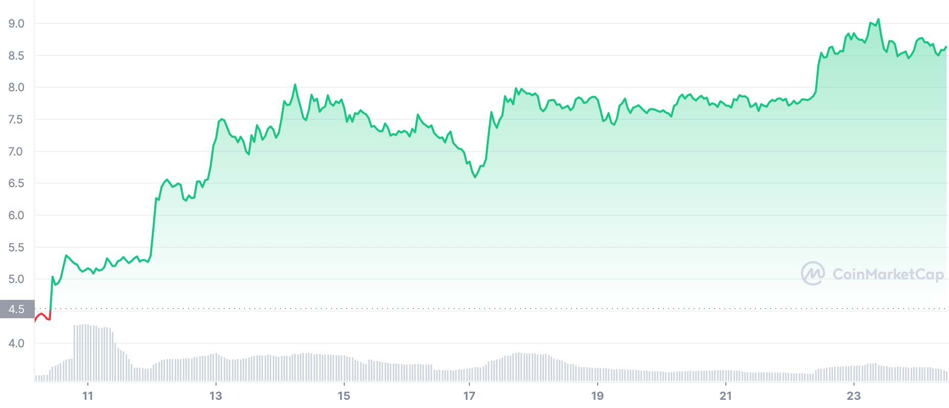 Huobi Token has risen 116% in the past two weeks,after Justin Sun became a new advisor to the exchange and made a series of pumping statements regarding the cryptocurrency. With similar performance against Bitcoin, amid the extremely low volatility of BTC in recent weeks, HT was unequivocally the market leader in terms of profitability in October.