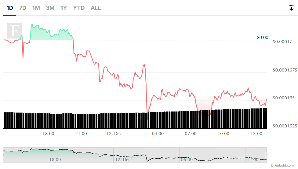 Indeed, LUNC was at press time changing hands at the price of $0.0001644, recording a 3.62% drop on the day, adding up to the weekly loss of 6.56% and 8.92% across the previous 30 days, as per data retrieved by Finbold on December 12.