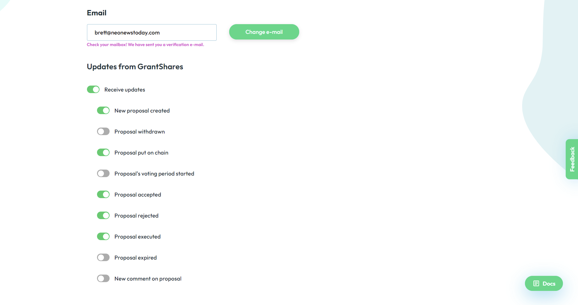 AxLabs has implemented a new notifications feature into the GrantShares web app. Users can opt-in to receive progress updates on proposals, making it easier to stay in the loop with platform activity.