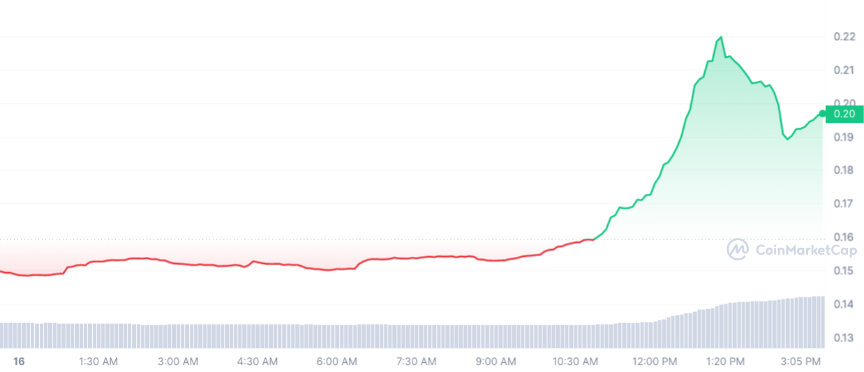 Interestingly, the price of VELO managed to rise by 15% in the hours before the listing was officially announced. The main momentum, however, occurred at the time of the announcement, when the price of the token went clearly from $0.18 to $0.23, where the first sales began.