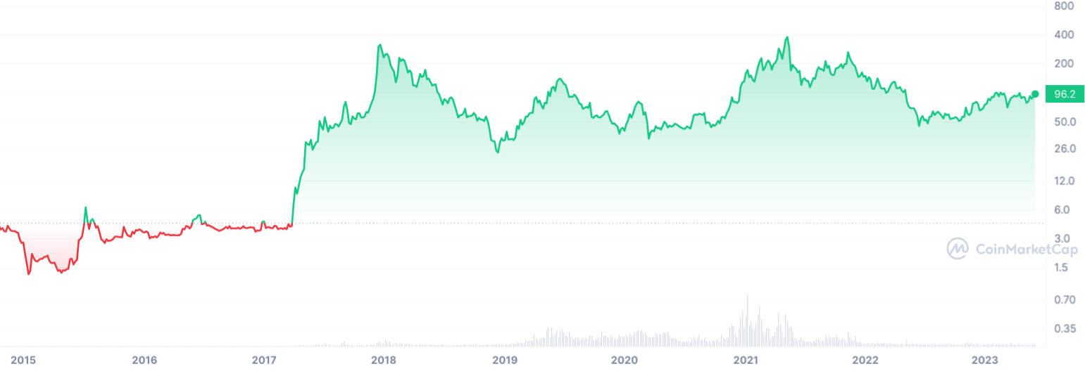 With a rich history in price fluctuations, market participants are drawing analogies to gain insights into what can be expected in anticipation of this significant event. Based on past patterns, Litecoin usually starts rising 200 days before the halving and finishes around 35-40 days prior to the event. This year, Litecoin began its price growth on Jan. 16, resulting in a 15% increase so far. If the pattern holds, this cycle should end on June 29, with the halving itself predicted to occur around August 4.