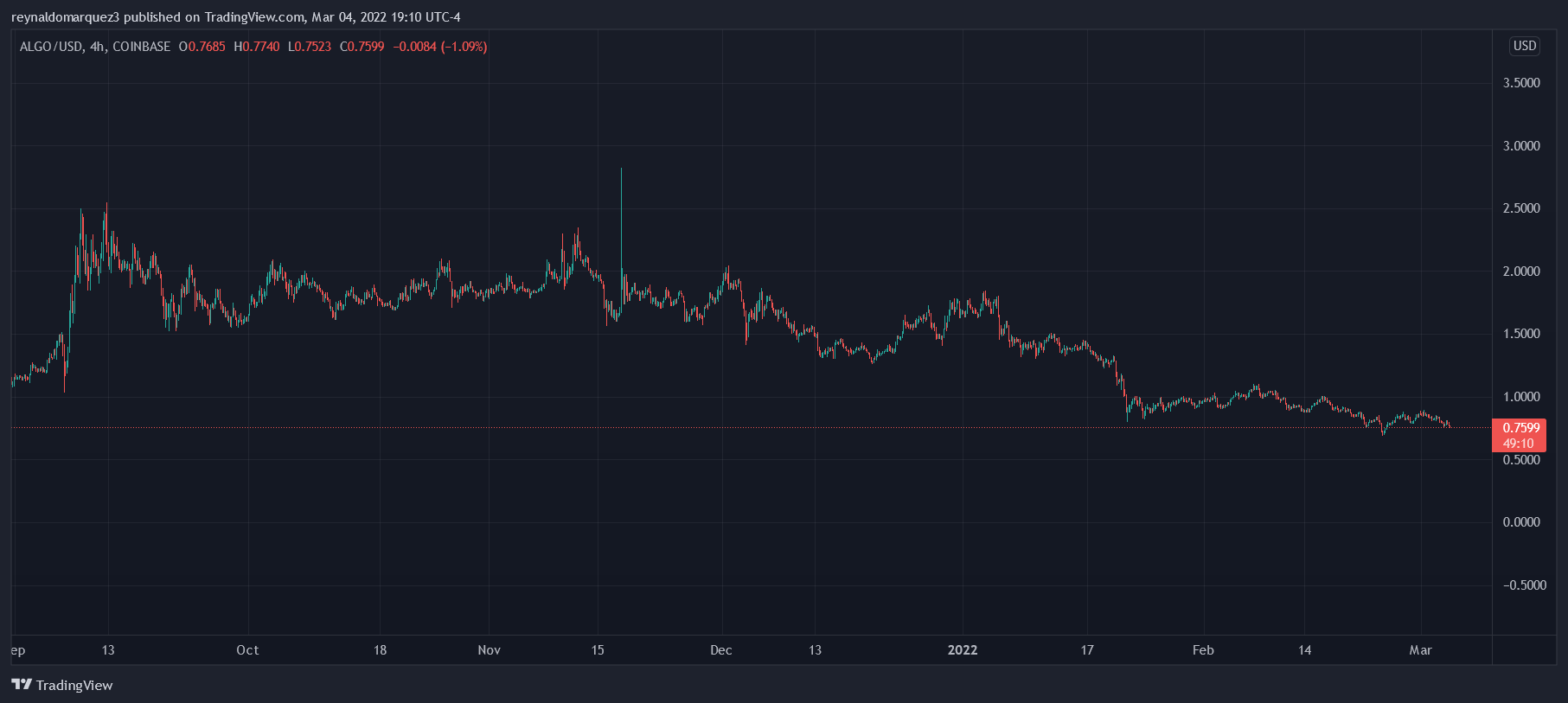 As of press time, Algorand (ALGO) trades at $0.76 with a 3.7% loss in the past 24-hours. On higher timeframes, the cryptocurrency records a 20.5% loss in 30 days and a 35% loss in one year.