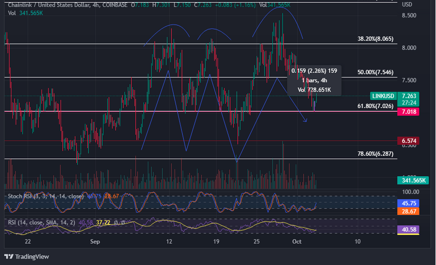A downward trend may be forming. However, at this time, Chainlink’s price is quite volatile on the intraday and 4-hour time frames.