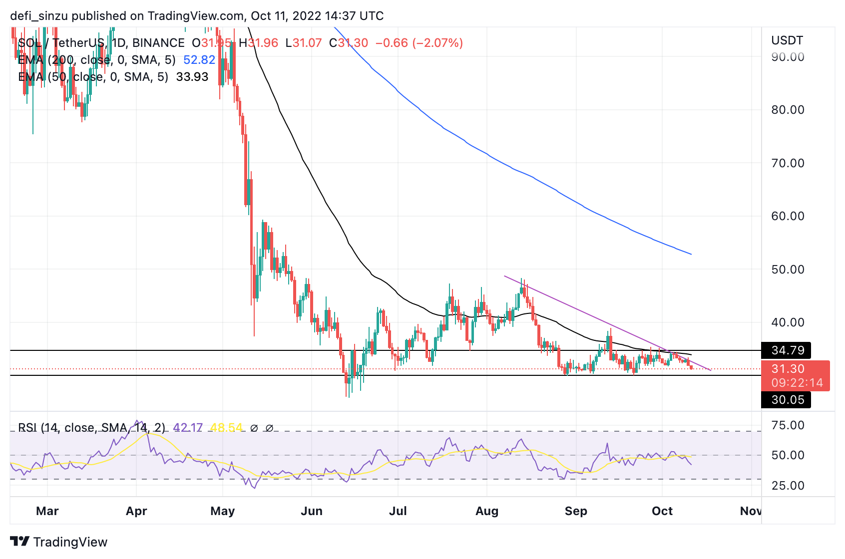 Despite showing some great price movement in recent weeks with so many traders and investors becoming interested in the price movement of SOL ahead of this month, the price has seen less of a bullish movement as its price continues to struggle to hold above $30.