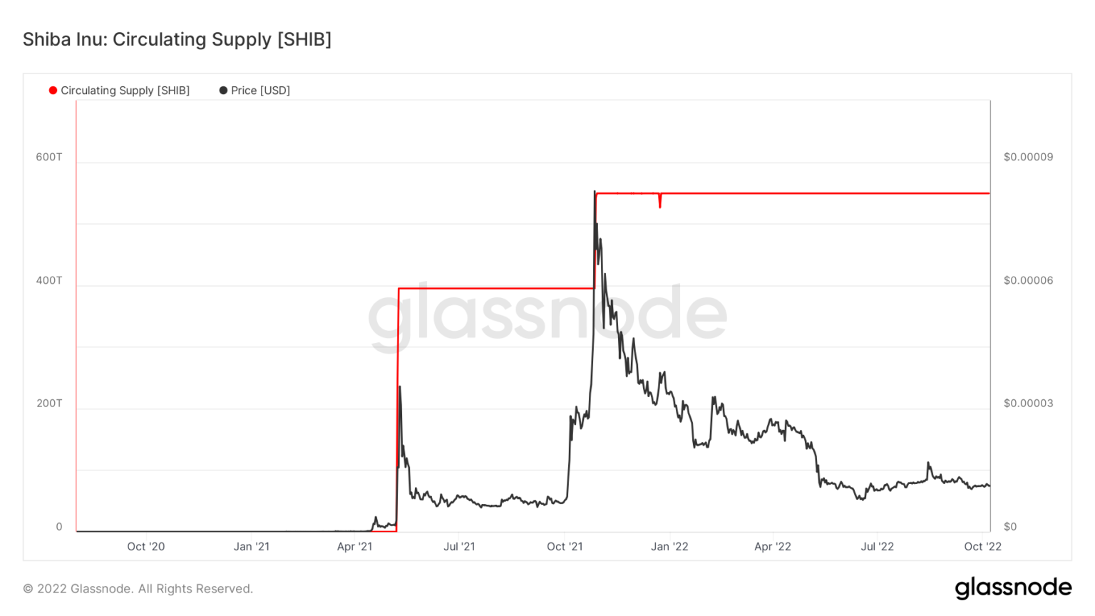 Shiba Inu came into circulation for the first time in April/May 2021 by releasing 400 trillion tokens into the market. A high number of unlocks occurred shortly after the release.