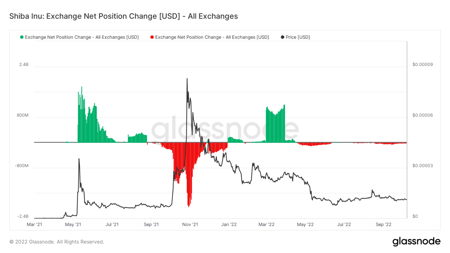 Popular meme coin Shiba Inu (SHIB) recorded two all-time highs (ATH) in 2021. Still, the amount of SHIB held in exchanges responded to these highs in opposite directions, according to data from Glassnode.