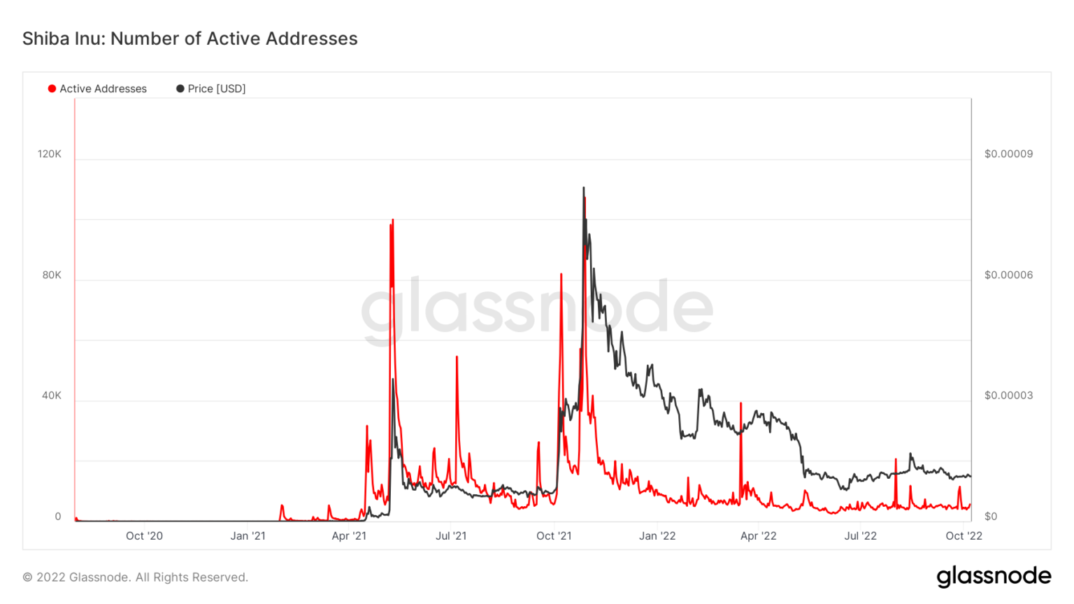 The Shiba Inu network also recorded strong usage rates throughout 2021, consistent with the token unlocks. The network reached over 100,000 active addresses a few months after the initial release.