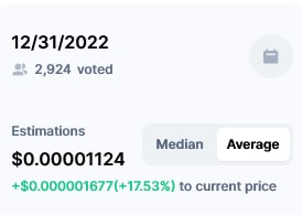 Disclaimer:The CoinMarketCap cryptocurrency community price estimate is based only on the votes of its users. Estimates do not guarantee end-of-month prices.