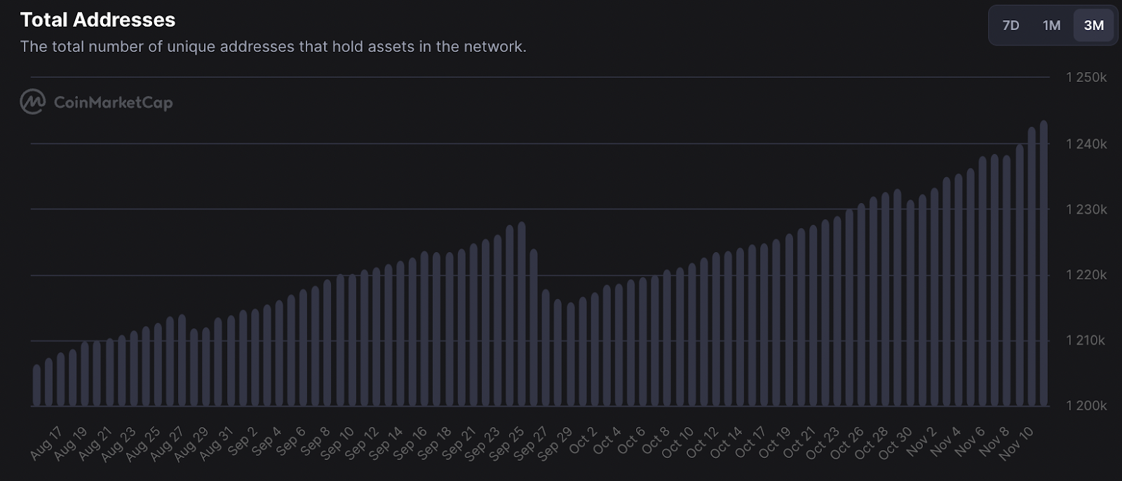In this line, SHIB has witnessed a steady increase in holders, with the figure standing at 1,243,497 as of November 11. The holders represent a growth of 3% or 37,225 over the last three months.