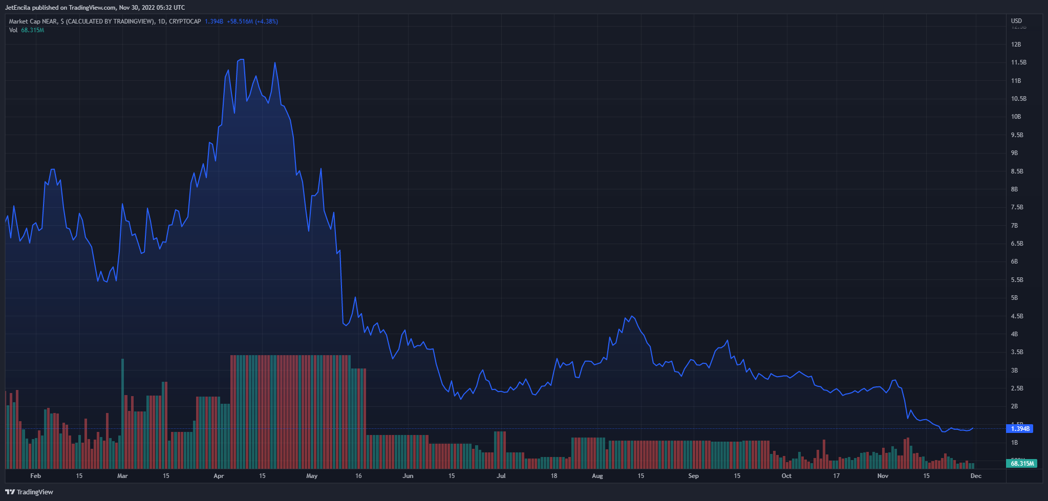 NEAR, the native token of the public proof-of-stake (PoS) blockchain Near Protocol, dumped more than 50% of its current monthly high of $3.42 that it achieved on November 6.