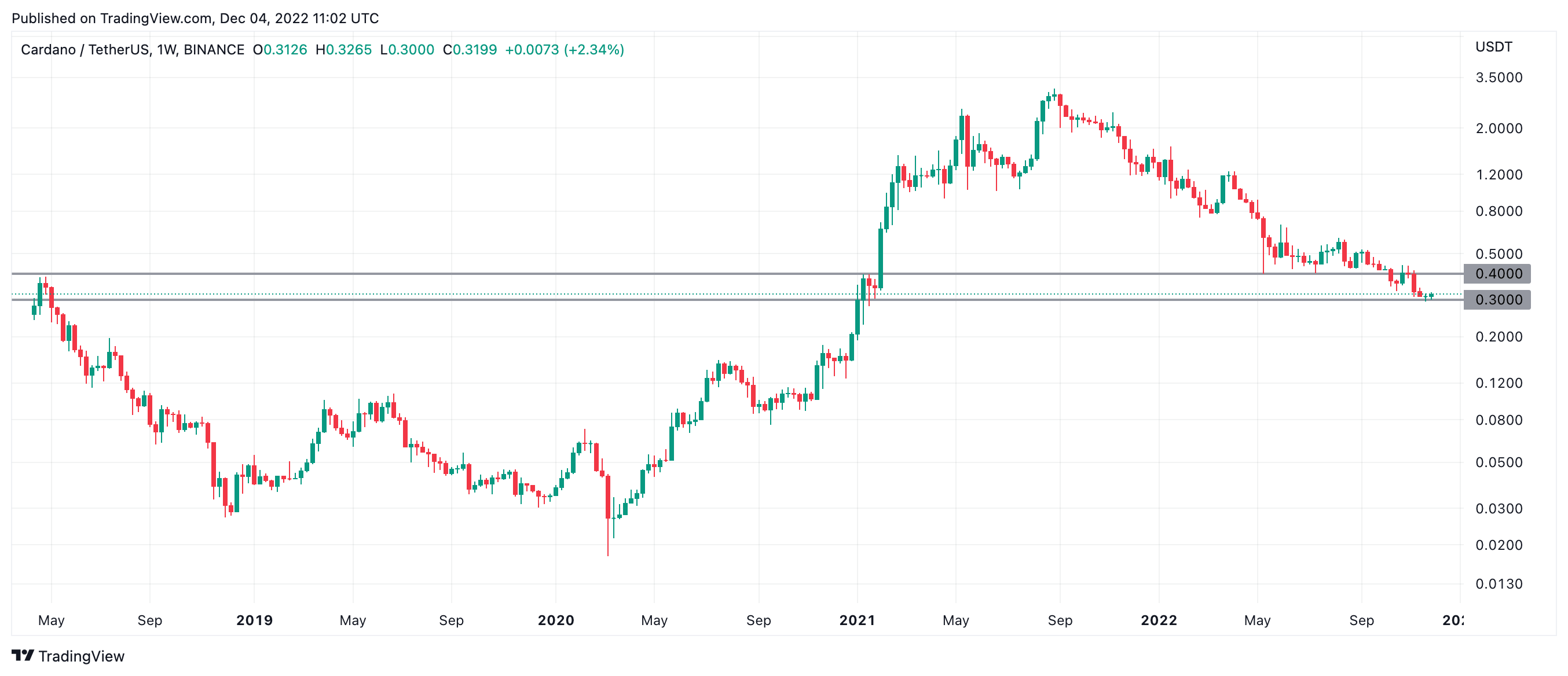 For the past three weeks, ADA has been holding above the $0.3 level, which is extremely positive. In fact, this level is the lower end of the corridor, where the ceiling is located at $0.4.