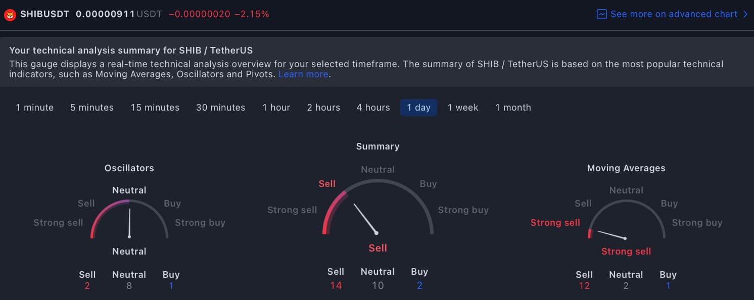TradingView’s technical analysis (TA) indicators on 1-day gauges still remain largely bearish for the time being, with their summary point toward ‘sell’ at 14.