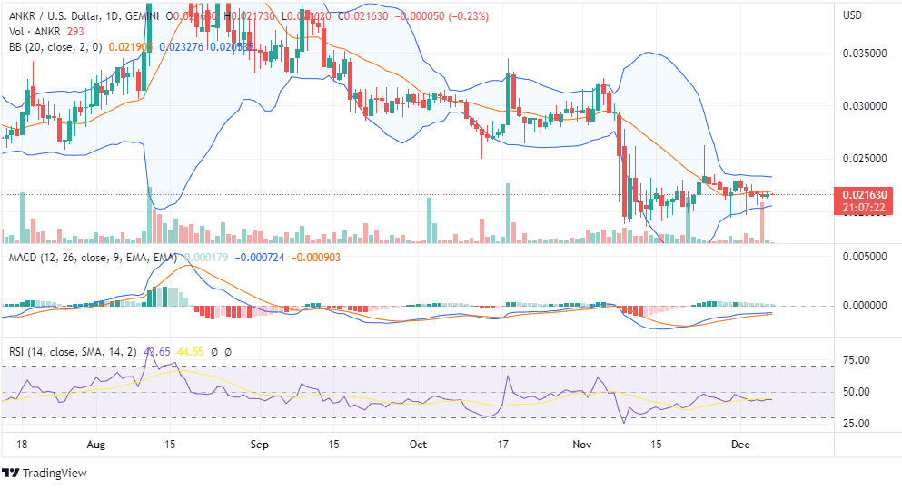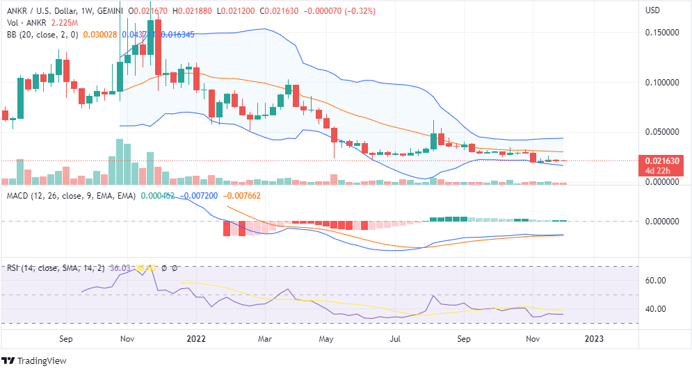 Overall, the weekly chart has been in a downtrend, but $0.028 is a crucial level for the long term because the ANKR price has taken support around that level throughout the year. At the end of November, it broke that level creating a bearish outlook for the long term.