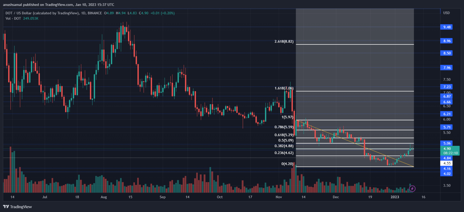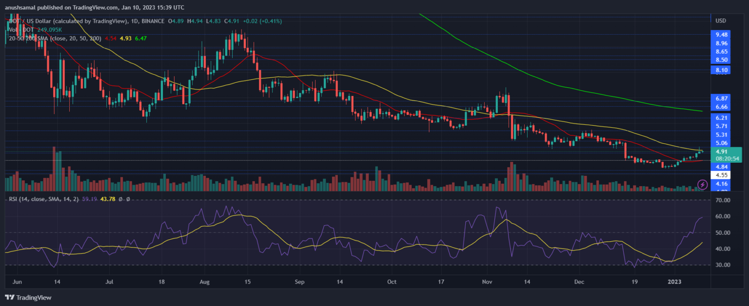 The Polkadot price posted significant gains over the last week after Bitcoin showed recovery on its chart. Other altcoins have also moved in the same direction. At the moment, however, DOT has been trying to breach the immediate resistance of $5.