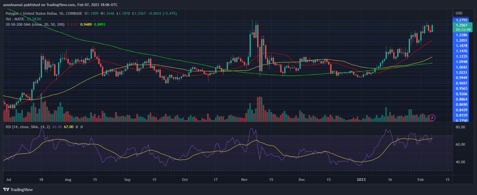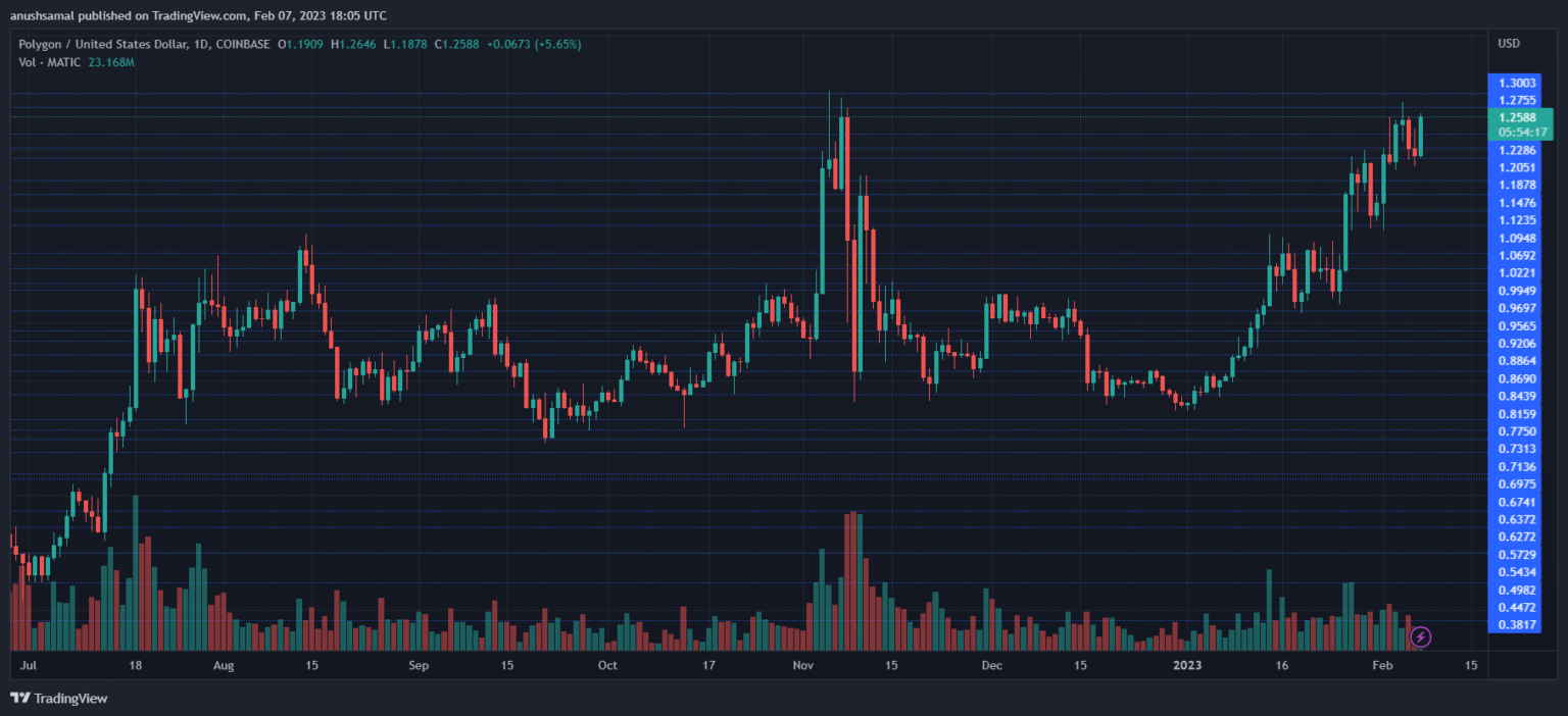The altcoin was trading at $1.24 at the time of writing. Over the last week, the coin broke past important resistance levels; for instance, the $1.18 level acted as a strong barrier. After MATIC crossed that level, the coin moved up more quickly until it touched the $1.25 level.