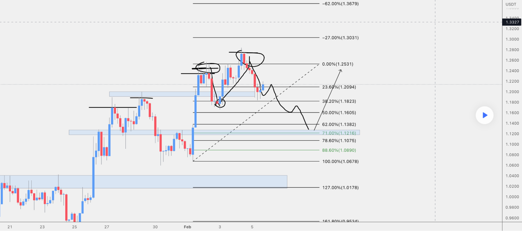 Bulls obviously want to continue their ascent but are currently trading within an Ascending Broadening Wedge pattern that probabilistically breaks out to the downside in the majority of cases. To avoid a short-term pullback bulls want to retest their recent high at the 0 fib level and break the upper bound of the 4HR time frame.