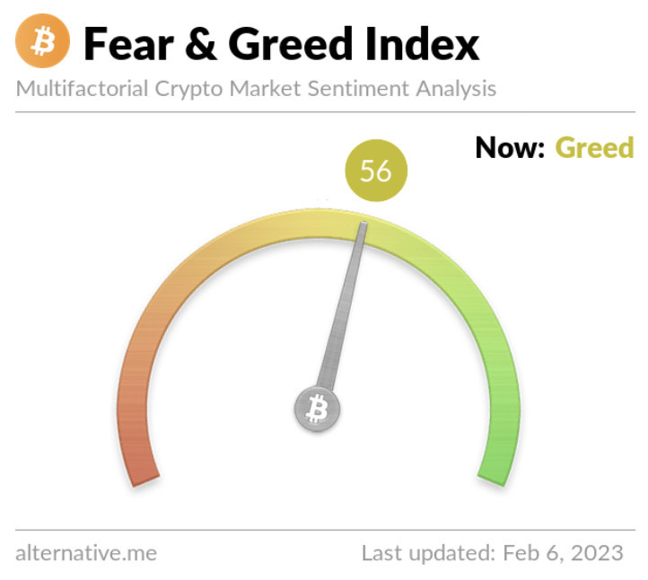 The Fear and Greed Index is 56 Greed and is -2 from Monday’s reading of 58 Greed.