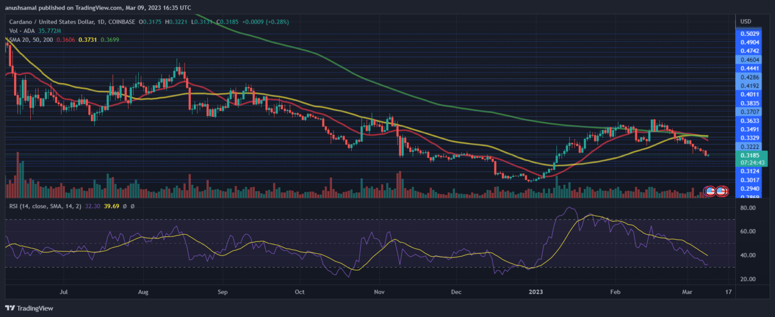 ADA was trading at $0.31 at the time of this writing. The altcoin witnessed considerable resistance at the $0.33 level; if it topples above that mark, the coin can start to recover. ADA’s two important resistance marks stood at $0.34 and $0.38.