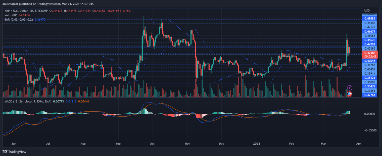 With Bitcoin breaking past the $28,500 level, other altcoins will attempt to break past their immediate price ceilings. Currently, XRP is standing at a crucial resistance mark; a fall below this level might bring the bears back for a short period.