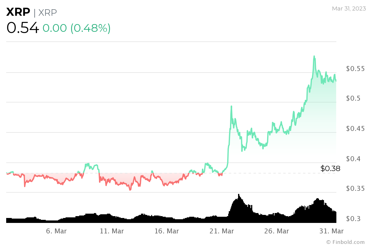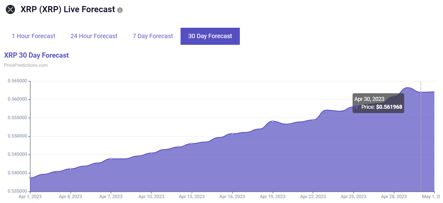 With this in mind, Finbold has consulted the machine learning algorithms over at the crypto tracking platform PricePredictions. As it happens, the algorithms using artificial intelligence (AI) technology predict that XRP will be trading hands at the price of $0.561968 on April 30, 2023, according to the latest data retrieved on March 31.