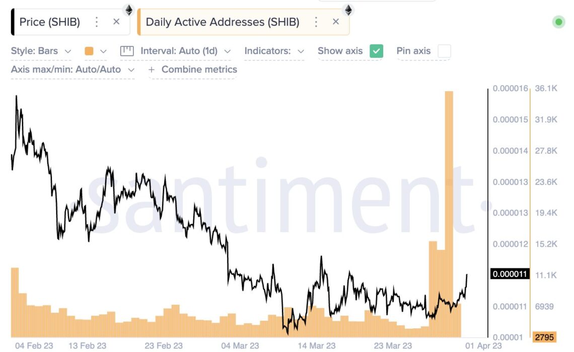 At least the underlying fundamentals provide some hope for the Shiba Inu bulls. As analyst Ali Martinez pointed out via Twitter, Shiba Inu recorded its largest increase in daily active addresses in a year at the end of March.