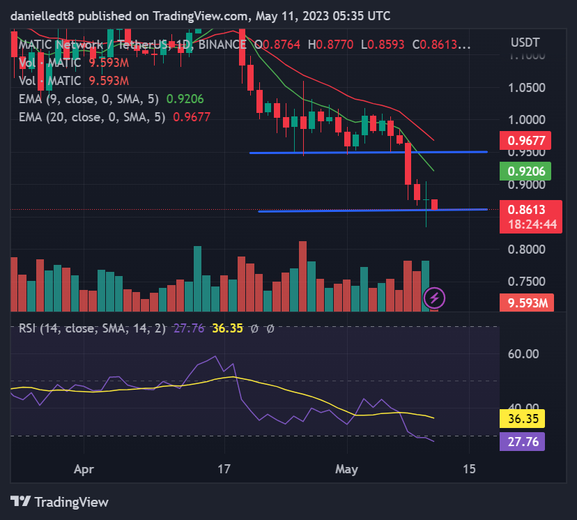 The last week was not kind to MATIC, as its price entered into a downward spiral over the past 7 days. As a result, it lost the support of the $0.9465 support on Monday after it dropped more than 6% during the day’s trading session. In the two days that followed, bulls had attempted to defend the next key support level at $0.8593.