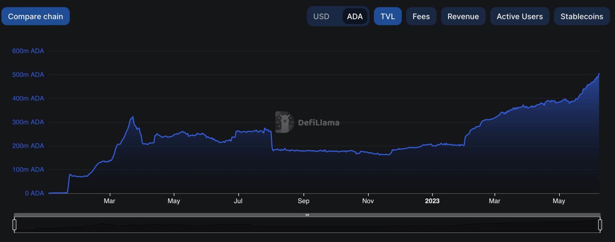 Elsewhere, Cardano has achieved a remarkable milestone by surpassing a historic achievement, with its Total Value Locked (TVL) exceeding 500 million ADA on June 8.