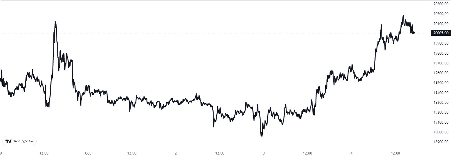At the time of writing, Bitcoin’s price floats around $20k, up 4% in the past week.