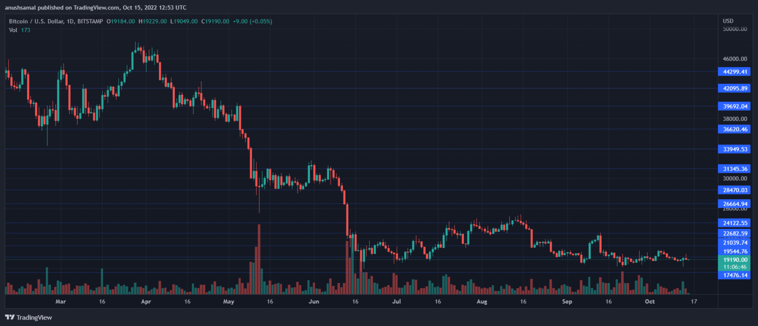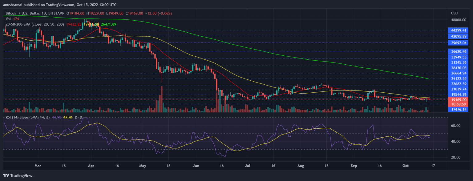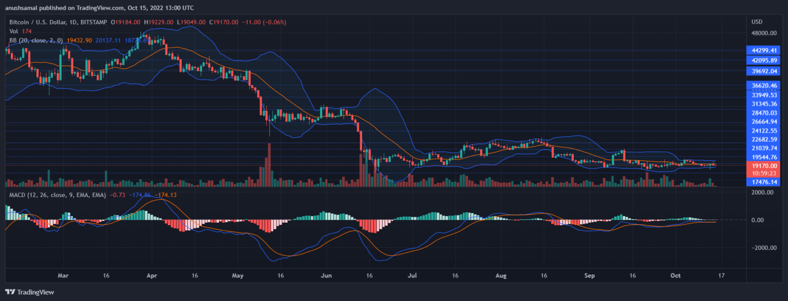 Bitcoin price continues to witness strong resistance around the $19,400 mark. Over the last 24 hours, the coin depreciated by 2.9%. At the beginning of this month, Bitcoin price had staged a brief recovery but it was met with selling pressure.