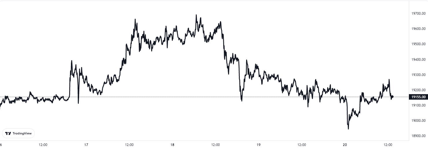 At the time of writing, Bitcoin’s price floats around $19.1k, up 4% in the last week. Over the past month, the crypto has lost 2% in value.