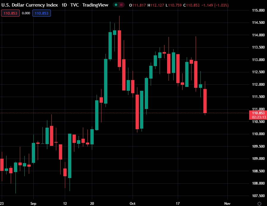 TraderXO was looking for a pullback on the Dollar to around 110, which has now been hit, although he stated the DXY may not top out until January - February, and that its previous macro top had a distribution range that lasted a year.