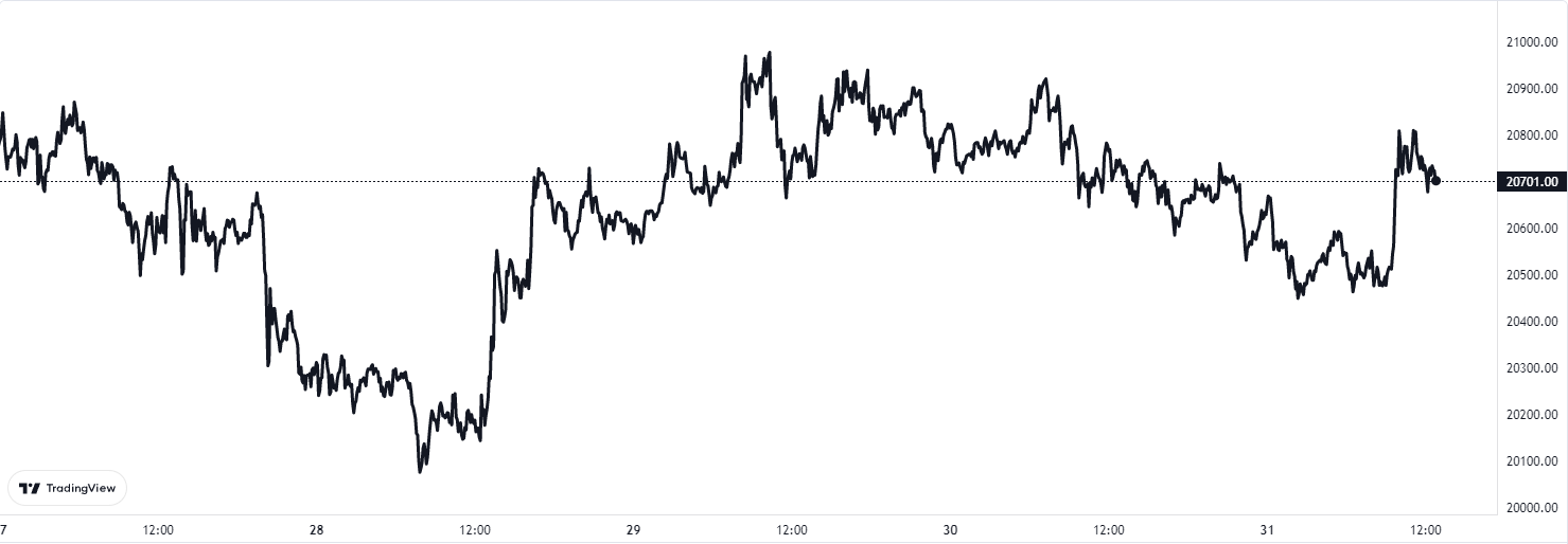 The value of the crypto seems to have been stable above $20k recently | Source: BTCUSD on TradingView