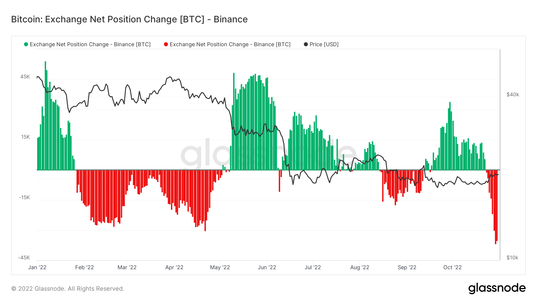 This picture took a turn between Oct. 29 and Oct. 30, when 120,000 Bitcoins were purchased from the Binance marketplace. Demonstrating the change with the longest red candlestick, the chart shows that this is easily the largest Bitcoin purchase from the Binance market since January 2022.
