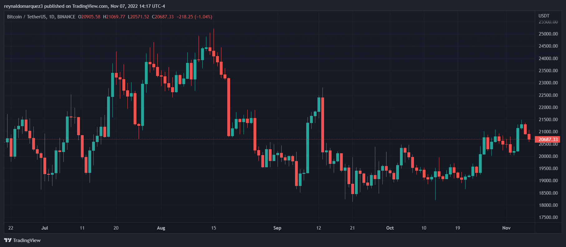 At the time of writing, the Bitcoin price trades at $20,700 with a 3% loss over today’s trading session and sideways movement over the previous week. This period has been profitable for digital assets against traditional assets, such as equities, for the first time.