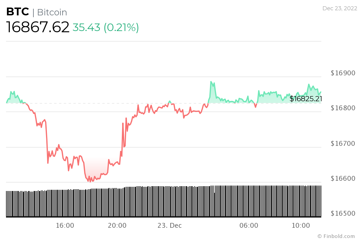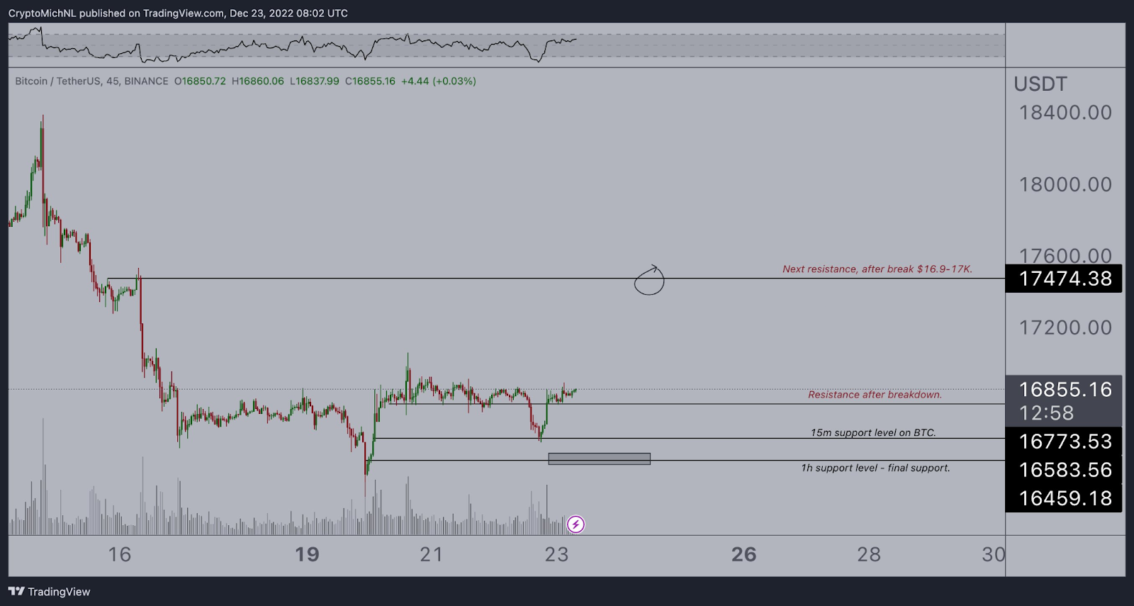 At the current price, a crypto trading expert, Michaël van de Poppe in a tweet on December 23, suggested that if Bitcoin holds the $16,750 position, the asset could break and rally to the range of $16,900 to $17,000 and target $17,450.