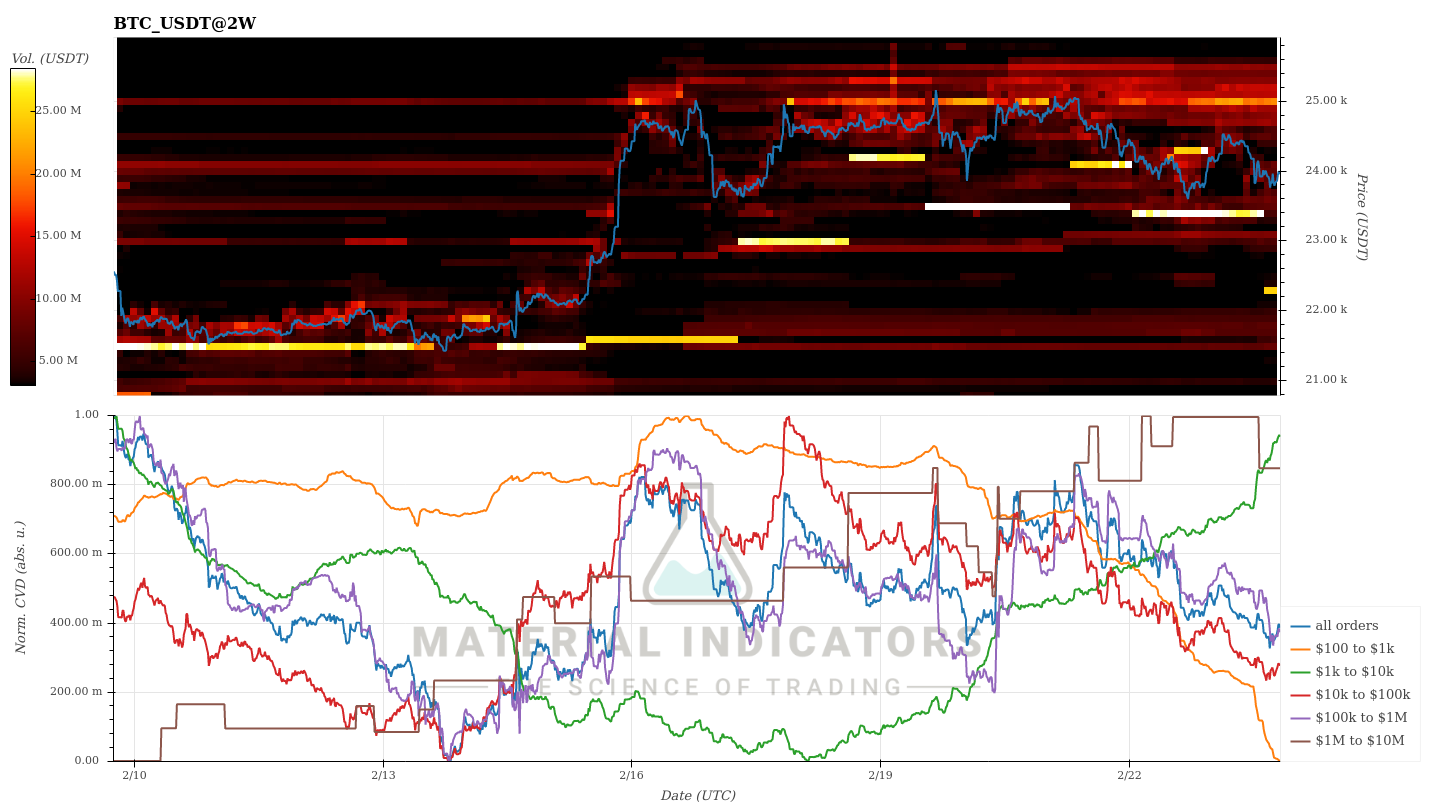 The bid wall has moved to the $22,400 area, and the next resistance level shown on the chart below appears to be forming at the $25,000 level.