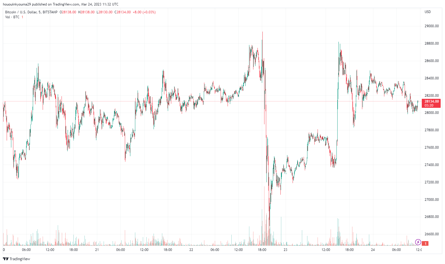 At the time of writing, Bitcoin is trading around $28,100, up 5% in the last week.