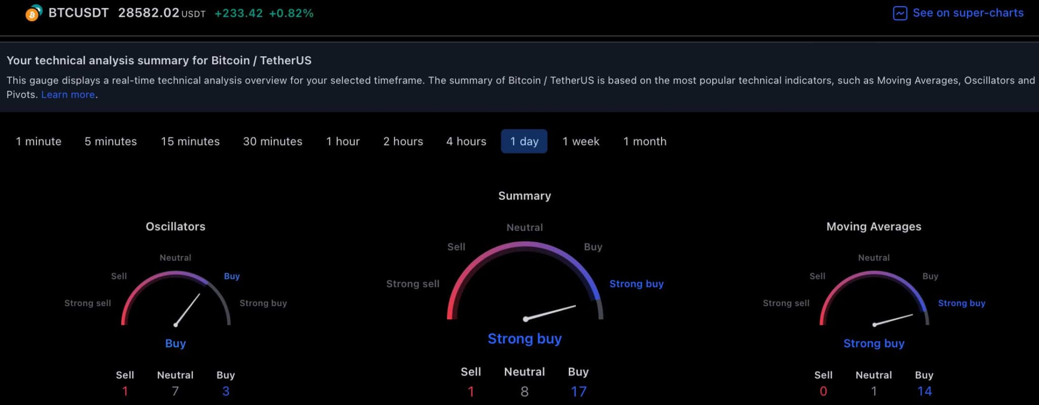 Meanwhile, the sentiment on the 1-day gauges at the finance and crypto tracking website TradingView is bullish. The summary suggests a ‘strong buy’ at 12, as summarized from the oscillators indicating ‘buy’ at three and moving averages in the ‘strong buy’ range at 14.