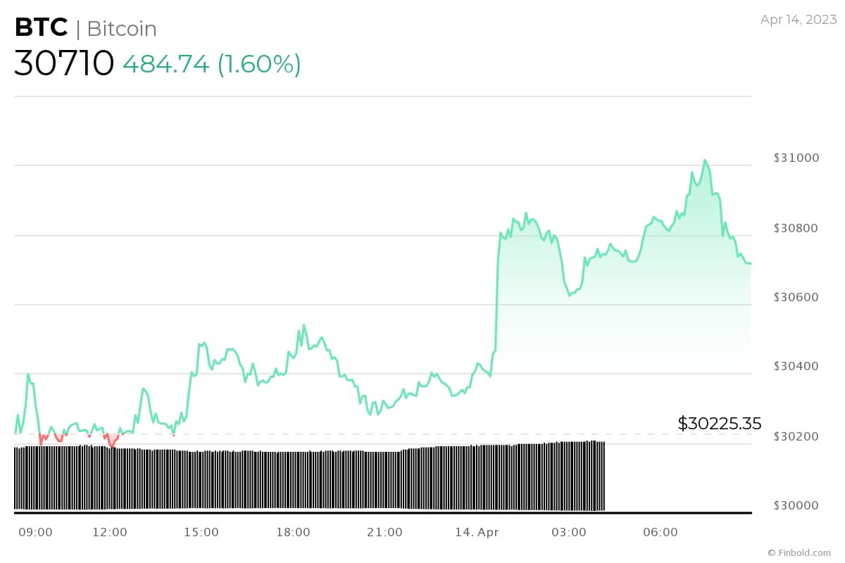 Currently, Bitcoin is trading at $30,733, up over 1% on the day and a further 10% across the previous week, with a total market capitalization of $594 billion, as per the data retrieved by Finbold on April 14.
