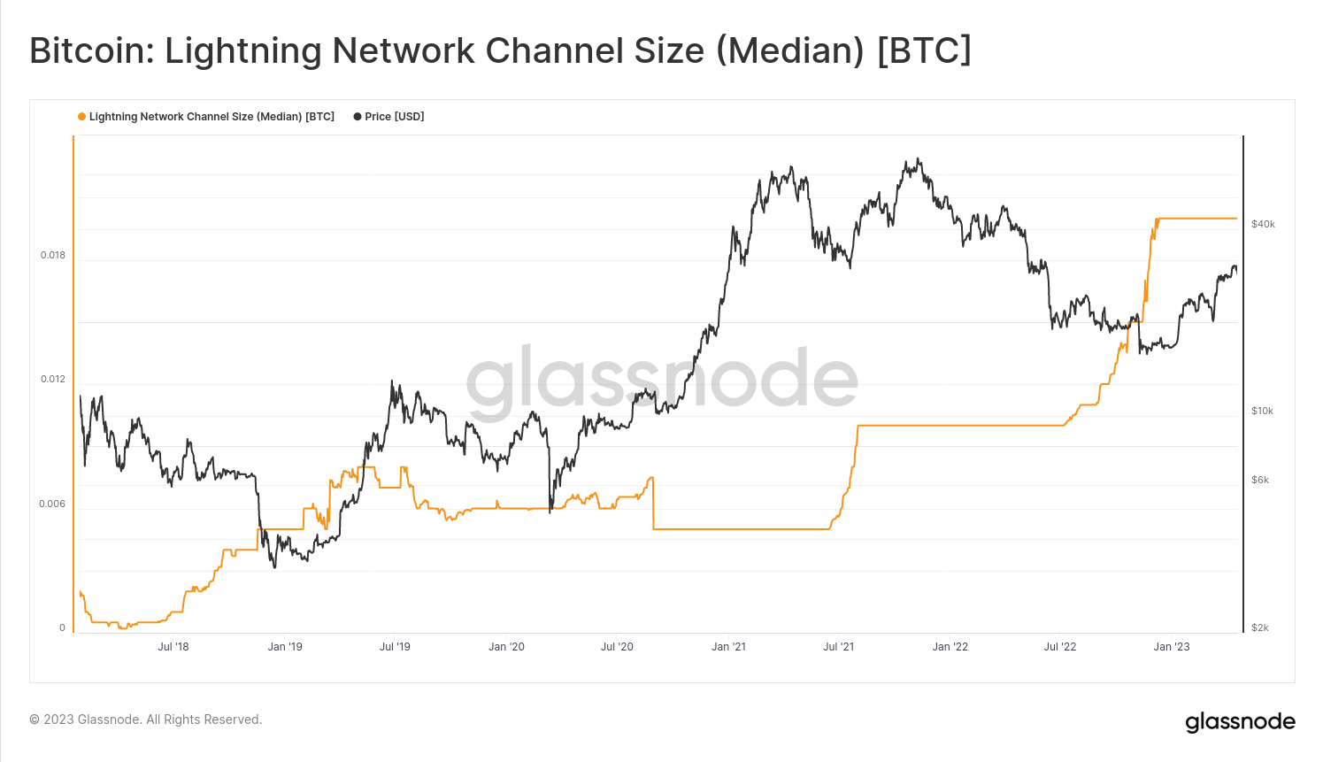“Of course, we must also consider that the typical channel is smaller than 1 BTC. The median channel size is 0.02 BTC and the mean is 0.08 BTC, so overall the Lightning Network remains well suited to payments below $1,000.”