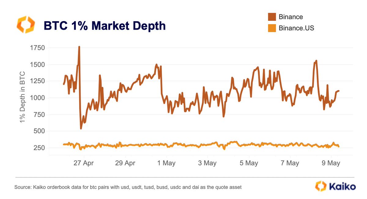 The chart above shows that BTC’s market depth has seen almost no changes since late April. The rumors about marketmakers leaving the space began circulating due to a Bloomberg report claiming that two of the largest, Jane Street and Jump, are scaling back on their crypto trading operations.