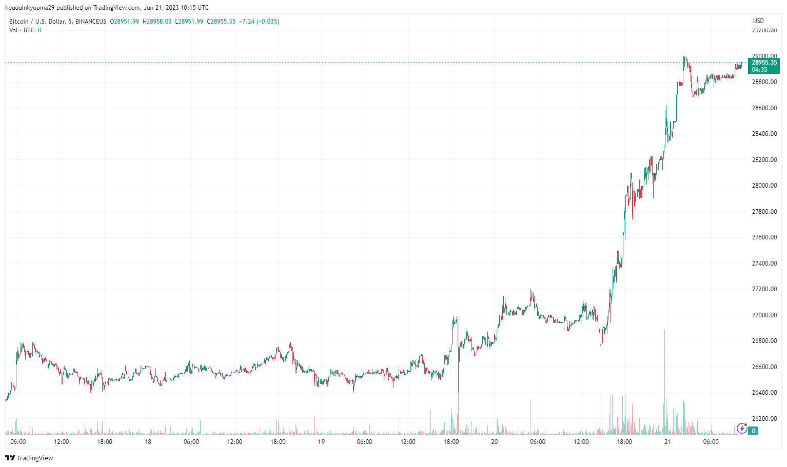 At the time of writing, Bitcoin is trading around $28,900, up 11% in the last week.