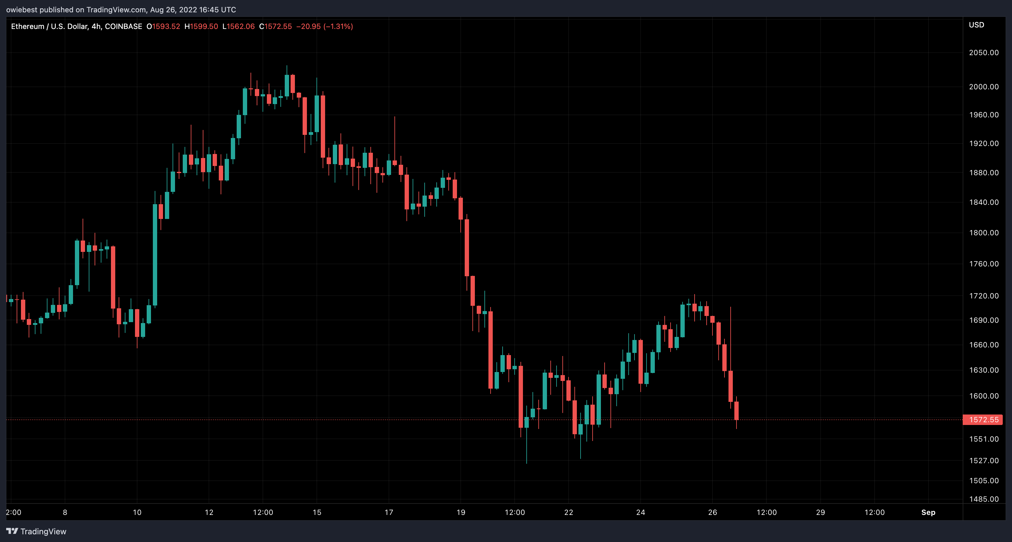ETH price falls below $1,600 | Source: ETHUSD on TradingView.com