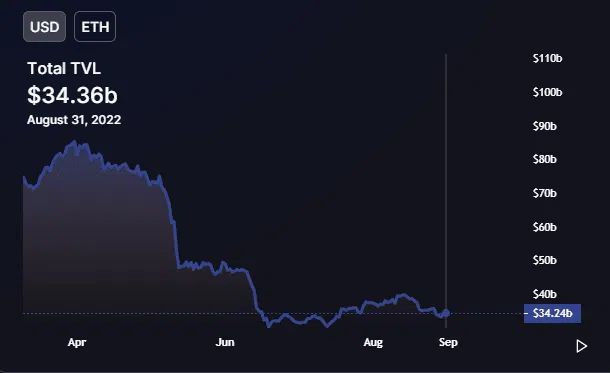 Ethereum saw a further decline in total value locked a few days to the highly anticipated “Merge” due to a continuous drop in the amount of liquidity poured into decentralized finance (DeFi).