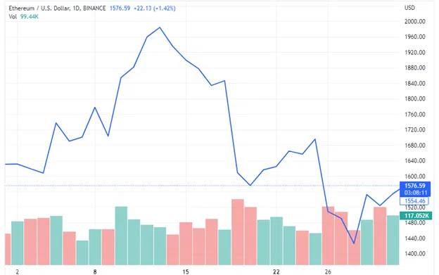 With that said, the coin crossed $2,000 for the first time since the last days of May. It eventually reached a monthly high of $2,022.79 on Aug. 14. After fighting off a steep decline in its price, ETH reached a monthly low of $1,427.73 on Aug. 29. Throughout Aug., Ether decreased by 7% from $1,681.45 on Aug. 1 to $1,553.68 on Aug. 31.