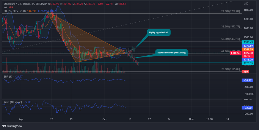As of this writing, Ether was down as it was reported that a further 75 basis point hike in interest rate by the U.S. Federal Reserve is possible in November if economic conditions don’t improve.