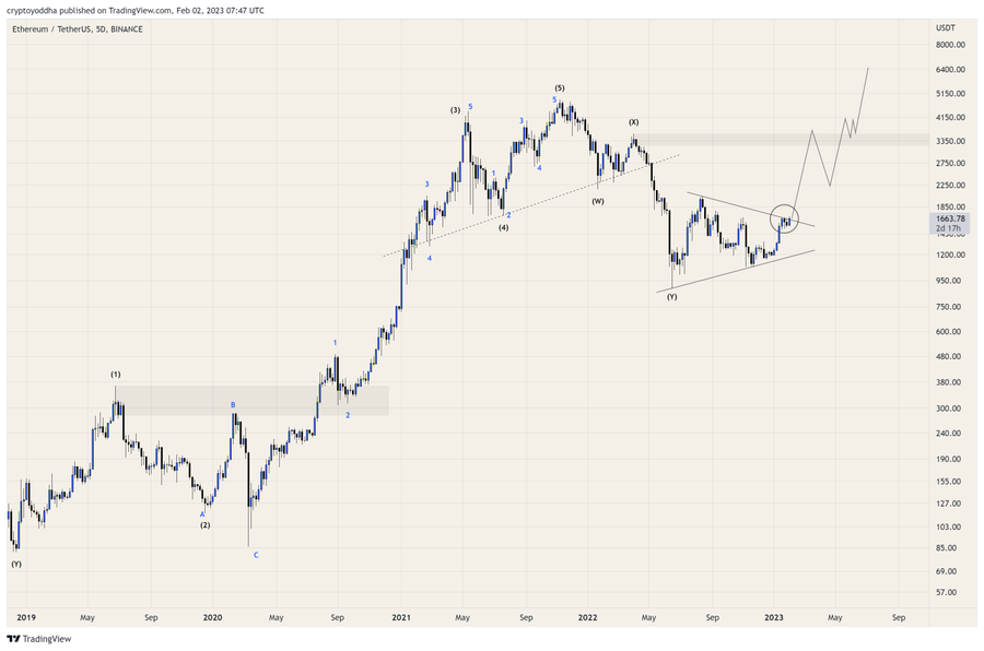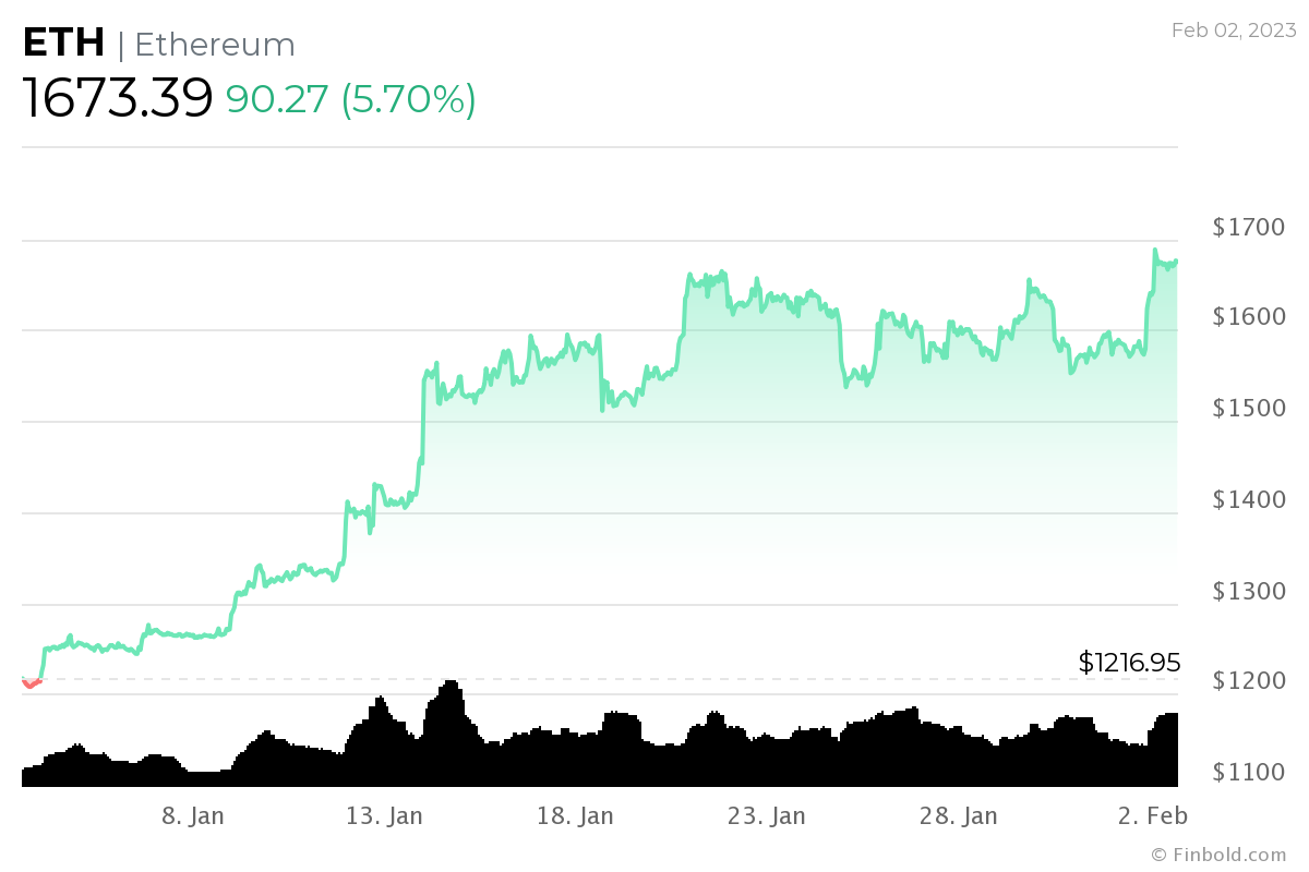The predicted ETH rally in the future could be partially attributed to the developments on the Ethereum blockchain, such as the testnet for its staking feature, which was launched on February 1, in anticipation of the Shanghai and Capella upgrades set for February 7.