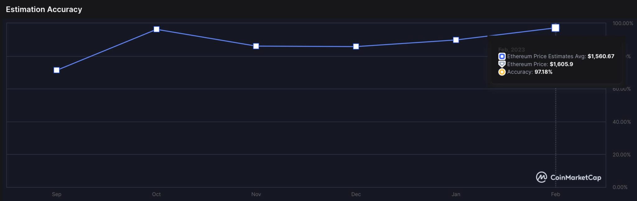 It is also important to note that the projections of the crypto community for Ethereum over the last six months have had a historical accuracy of 87.72%, making them a suitable alternative to the price estimates made by the artificial intelligence (AI) platforms that have set a slightly lot lower Ethereum price for the same period at the price of $1,529 by March 31.